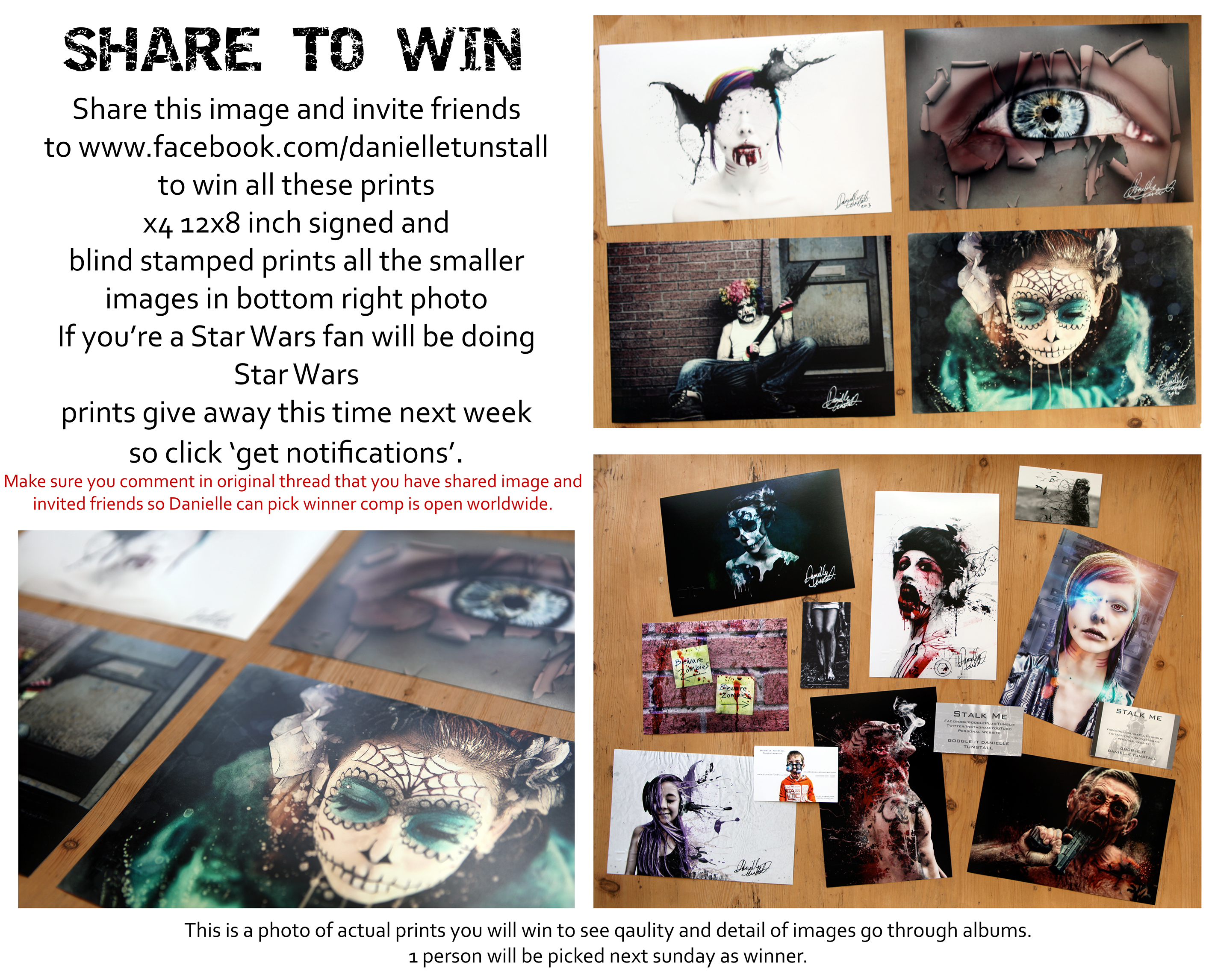 If you can’t get to Danielle for the photoshoot, enter this competition to win signed prints, as it’s open worldwide so anyone can enter, again just click ‘like’ and invite friends to page, comment on the image on the page stating that you have done so, to be in with a chance of winning. If you follow Danielle for her Star Wars work she will be doing Star Wars print giveaway this time next week so click get notifications on page.