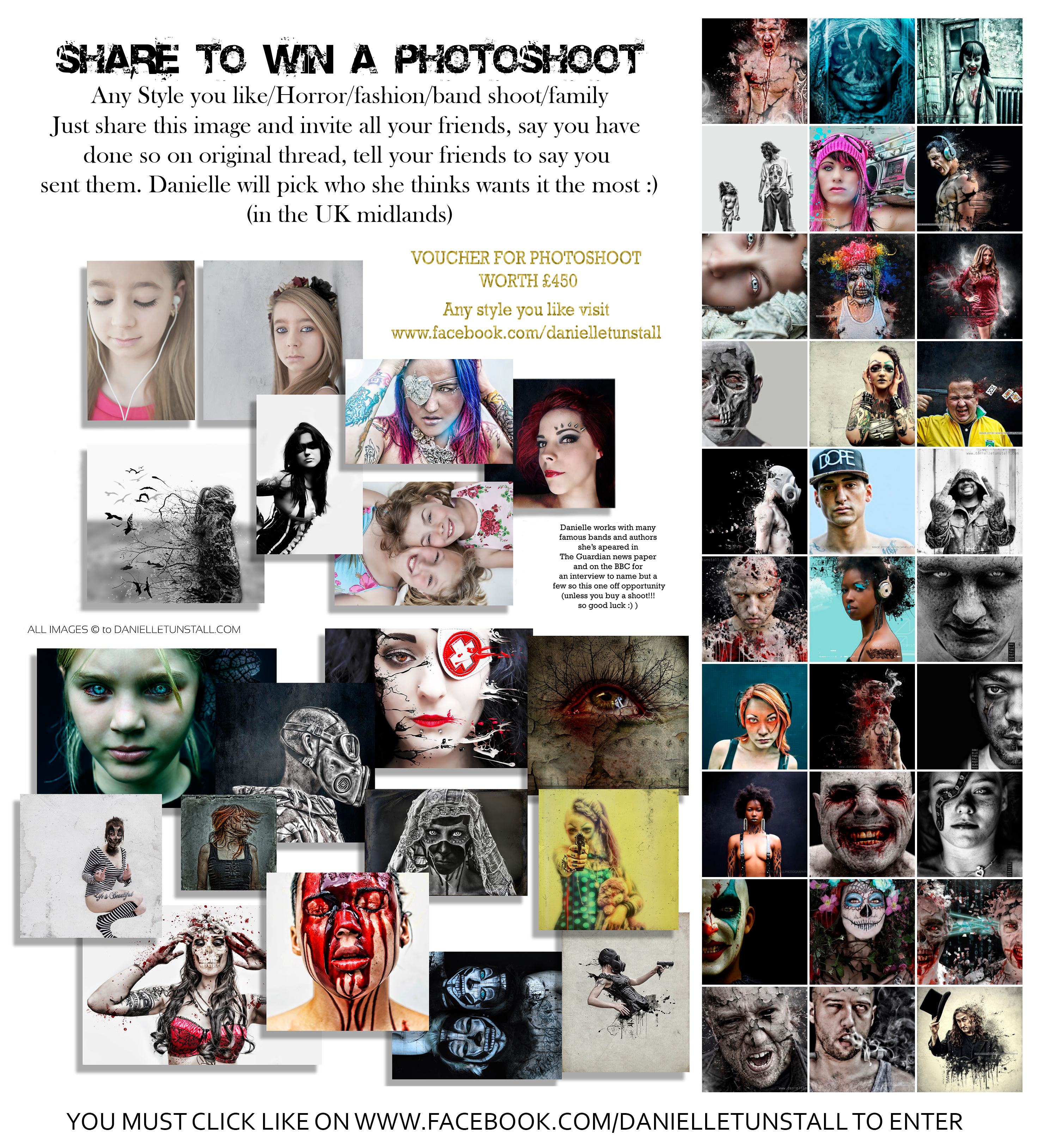 Facebook Giveaway Check Danielle’s FACEBOOK page, click ‘like’ and invite friends, for more info, and to share this image to be in with a chance of winning a photoshoot, Danielle is based in the Midlands UK so you must be able to get there to enter.